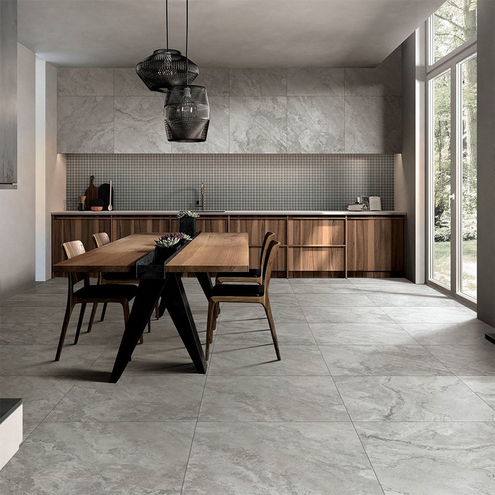 Product Description  Baroque natural stone tiles are  a testament to opulence and timeless elegance offering a luxurious aesthetic that elevates any interior space.  It is renowed for its intricate veining and rich, vibrant hues that is  captured in the natural beauty of stone. Available in 2 colours Grey and Light Grey. Baroque is a Surfacetec®   product.