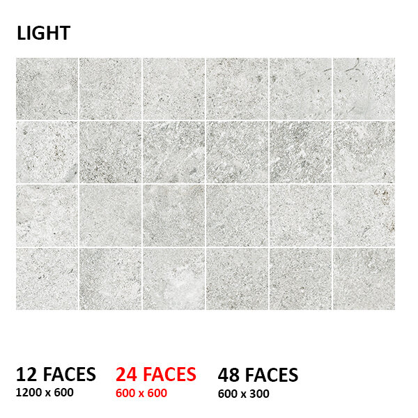 Size 30×30 | 30×60 | 60×60 | 60×120 | 29.8×29.8 Mosaic | 40×60 Square edge Bullnose 20mm | 60×60 Paver 20mm